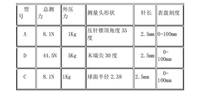 按硬度計壓針形狀分為 A 型、D 型和 C 型三種