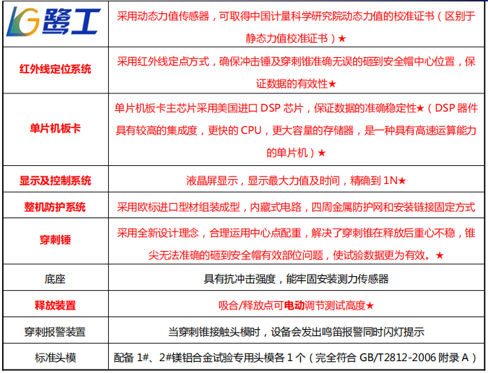 一、用途 根據安全帽最新國標 GB/T 2812-2006《安全帽測試方法》、GB/T 2811-2007《安全帽》研制, 用于檢 測安全帽的沖擊吸收性能測試和安全帽穿刺性能測試,廣泛應用于特種勞動防護用