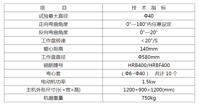 ?設備名稱:鋼筋彎曲試驗機 ?型號:GW-40 ?性能說明: 該試驗機是對鋼筋進行冷彎試驗和平面反向彎曲試驗的一種工藝設備。其主要參數符合GB/T1499.2-2007《鋼筋混凝土用圓鋼第2部分