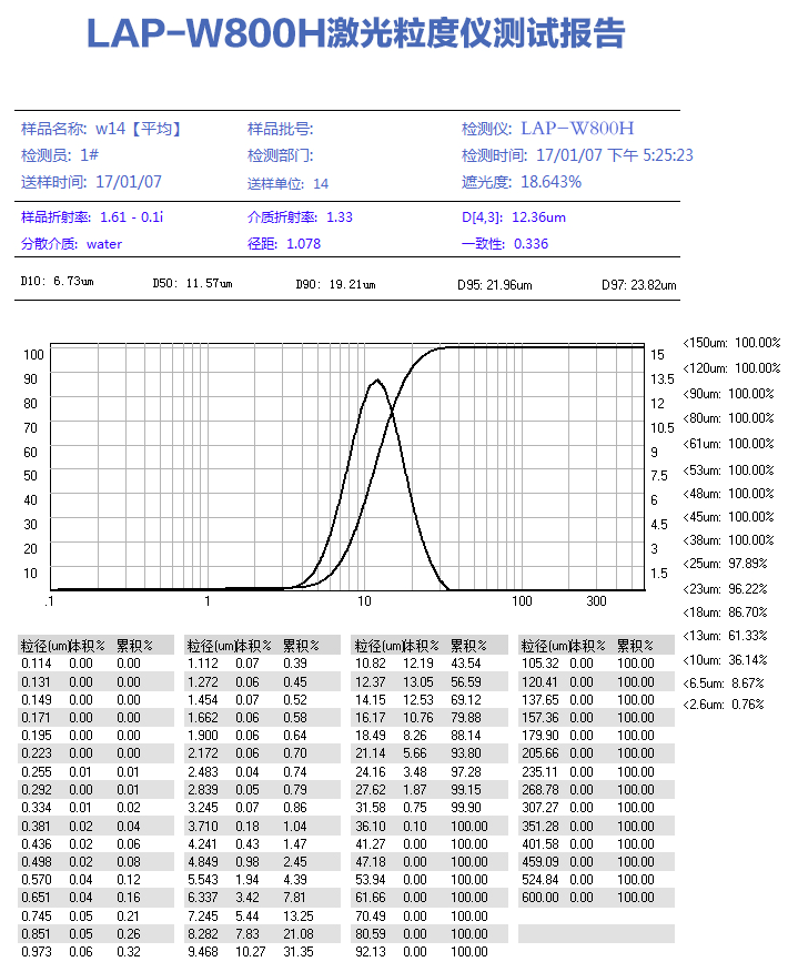 | 統計方式 | 體積分布和數量分布,以滿足不同行業對于粒度分布的不同統計方式 |